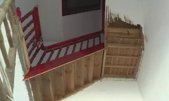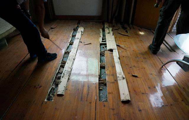 實(shí)木地板下的龍骨(龍骨一般是用松木搭建的,松木生長(zhǎng)周期快,密度不硬最適合白蟻啃咬)被白蟻啃食